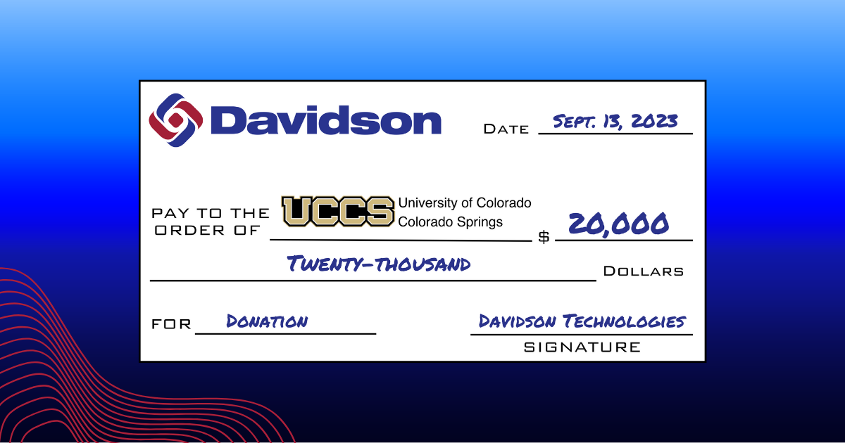 Colorado Springs, CO – On Wednesday, September 13, Team Davidson was pleased to present $20,000 to the University of Colorado Colorado Springs (UCCS), benefiting the Kevin W. O’Neil Cybersecurity Education and Research Center. UCCS is a recognized cybersecurity education leader in the Pikes Peak region, training cybersecurity professionals who work to ensure our Nation’s security. As a proud strategic partner, Davidson has made a commitment to the University to donate $20,000 for 5 years toward their growing Cybersecurity initiatives.